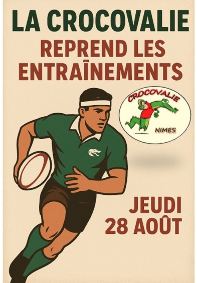Après un bel été festif et chaud, il est temps pour notre Crocos de reprendre la direction des terrains et d'entamer la prépa physique :) RDV Jeudi 28 Août 2025 20h00 au Stade des Courbiers (Hippodrome de Nîmes).